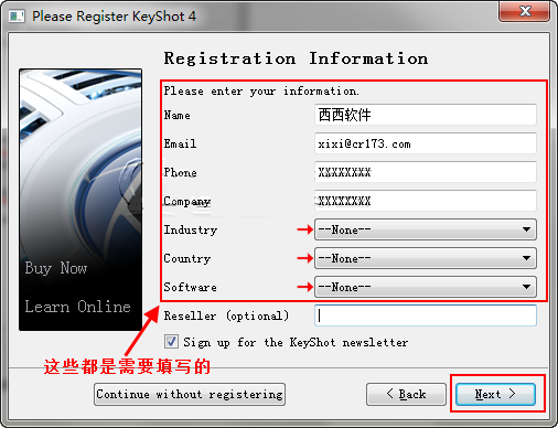 7、點擊next之后會讓你填寫注冊信息,這里隨便填吧,大概就是一些姓名、電話、國家、行業(yè)之類的信息,填完之后點next然后finish就完成安裝了。