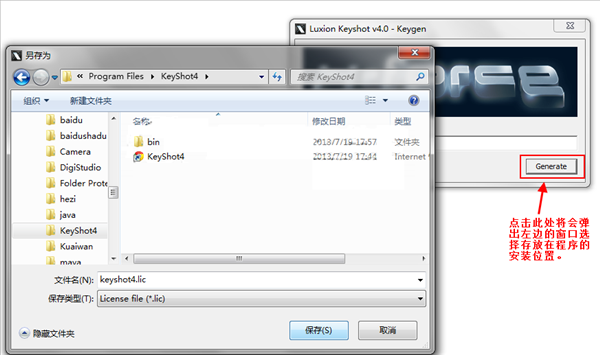2、運行注冊機(jī)文件夾中的keygen.exe文件。單擊右下角Generate.會彈出一個另存為的窗口,這是程序的許可證書,建議放在軟件安裝目錄下。