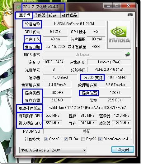 核心代號(hào)/GPU:此處顯示GPU芯片的代號(hào),如:G84M、G86M、RV630、RV610等。