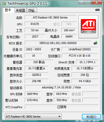 總線接口/BusInterface:此處顯示顯卡和主板北橋芯片之間的總線接口類型以及接口速度。
