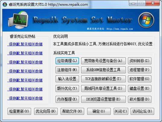 睿派克系統(tǒng)設(shè)置大師 V1.1 綠色免費(fèi)版 睿派克系統(tǒng)設(shè)置大師 V1.1 綠色免費(fèi)版