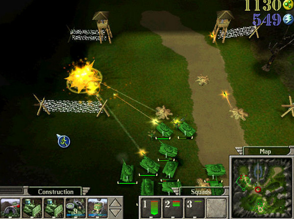 這次《玩具兵RTS》使用的Pandemic研發(fā)的引擎,曾經(jīng)應(yīng)用于Dark Reign2和BattlezoneII,所以將是一個(gè)全3D的游戲世界,色彩鮮亮明快,支持1024*768的分辨率,同時(shí)支持鏡頭的旋轉(zhuǎn)和放縮(不在會(huì)有兄弟被遺忘在建筑后面了)。雖然這款引擎在此時(shí)有點(diǎn)廉頗老矣的感覺(jué),但對(duì)于表現(xiàn)“線條”簡(jiǎn)單、光影效果要求一般的玩具世界來(lái)說(shuō),已經(jīng)綽綽有余。