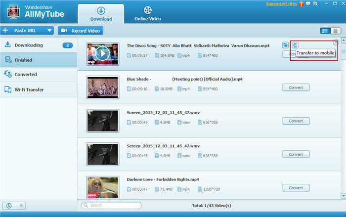 一旦被提示您有您的計算機和便攜設備之間已成功建立無線連接,您可以點擊你希望轉移完成庫開始文件傳輸過程中的視頻的無線傳輸圖標。您還可以檢查連接菜單選項與暫停和恢復文件傳輸,在任何時候轉讓進展情況。