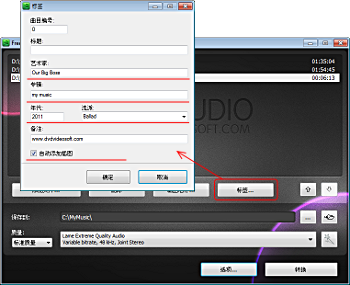 在新的“標簽”窗口加文件的號碼,題目,歌手以及其它你需要的參數。