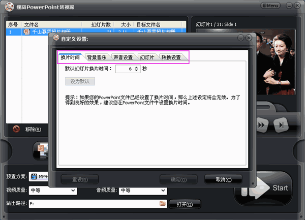 進(jìn)入自定義,設(shè)置切片時(shí)間、背景音樂(lè)等, 如圖
