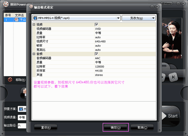 下一步:設(shè)置輸出視頻格式