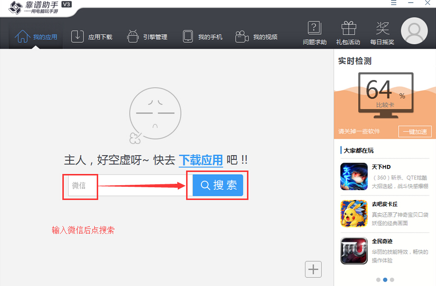 第四步、連接好之后,即可點(diǎn)擊【下載】你想要在電腦上網(wǎng)的app/游戲;