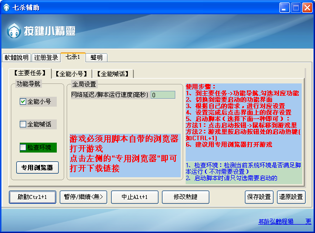 1、一鍵45級、自動喊話、全能小號2、全能小號需要設(shè)置的地方很少,直接啟動即可