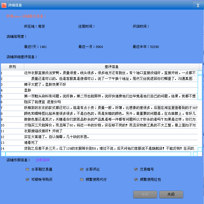 淘寶查查(淘寶信譽(yù)度查詢)特別能針對(duì)淘寶上現(xiàn)行的水軍刷交易量、水軍評(píng)論、可疑賬號(hào)購(gòu)買、頻繁使用代付以及頻繁使用紅包交易等潛規(guī)則進(jìn)行分析,能準(zhǔn)確地幫助廣大淘寶買家避免部分淘寶店鋪因不正當(dāng)競(jìng)爭(zhēng)行為帶來的損失。