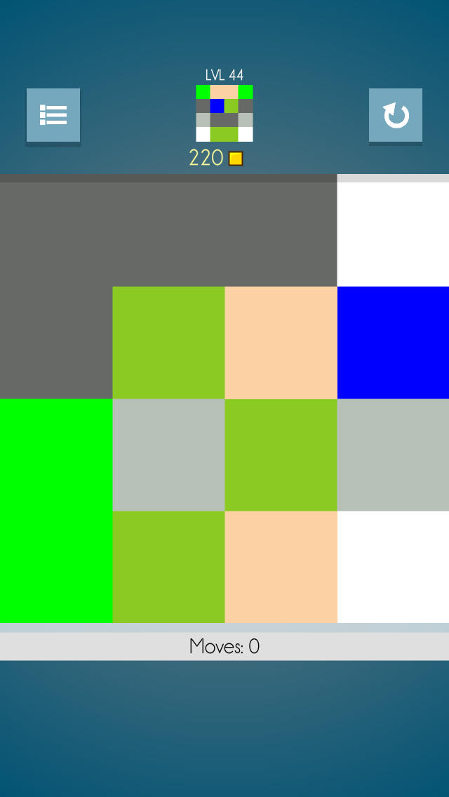 游戲屏幕上方會給出目標(biāo)圖形,玩家需要將屏幕下方散亂的方塊拼成目標(biāo)圖形。游戲分為4個模式:3X3、4X4、6X6、8X8,總共150關(guān),關(guān)卡難度不斷遞增。游戲使用盡量少的步數(shù)完成游戲,即可獲得更多的黃色方塊,黃色方塊可用于跳過關(guān)卡。