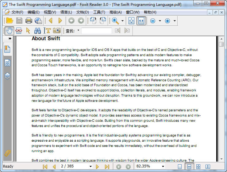 Swift編程語言官方教程(The Swift Programming Language) ,Swift語言是蘋果專為開發(fā)者研發(fā)的全新iOS和OS X應(yīng)用編程語言,Swift不像此前的編程語言那樣有多種復(fù)雜的符號和表達(dá)式,它的設(shè)計目標(biāo)是讓應(yīng)用開發(fā)更簡單、更快、更穩(wěn)定,同時確保最終應(yīng)用有著更好的質(zhì)量。