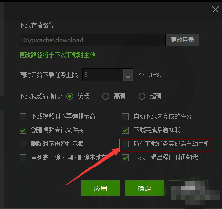4、在“視頻下載”中的“所有任務(wù)下載完成后自動(dòng)關(guān)機(jī)”的鉤打上