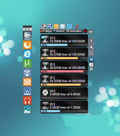 1、在桌面上顯示所有的硬盤分區(qū),也可以看到它的使用量。2、如果你不想要某些分區(qū)顯示在桌面上的話,可以在設(shè)置中隱藏它。