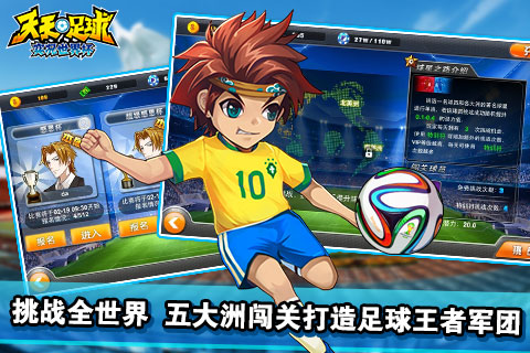 堪稱移動(dòng)游戲體育題材巔峰的天天足球?qū)崨r世界杯安卓版給了玩家一個(gè)足球游戲的全新高度——自己締造豪門傳奇的機(jī)會(huì)。本游戲是以經(jīng)營(yíng)球隊(duì)、帶領(lǐng)球隊(duì)參加比賽,不斷提高球隊(duì)實(shí)力為目的游戲。多人組隊(duì)輪流比賽模式以及對(duì)抗全球真實(shí)足球俱樂部和國(guó)家隊(duì)系統(tǒng)是本軟件的主要特點(diǎn)。【特點(diǎn)】