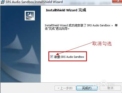 選擇程序安裝位置,不推薦C盤(記下安裝的位置,等下漢化用得到),下一步,完成安裝。取消”啟動SRS Audio Sandbox“項的勾選 ,然后再點擊“完成”按鈕,桌面會自動建立程序快捷圖標。