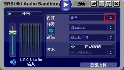 這里,可以選擇SRS的預設(shè)效果,有經(jīng)典、搖滾、爵士、鄉(xiāng)村等。