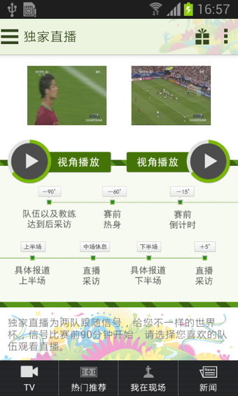 最新最全的世界杯大殺器來襲!CCTV5隆重推出世界杯APP,通過海量獨(dú)家版權(quán)拴住你的手指、迷住你的眼、hold住你的心!