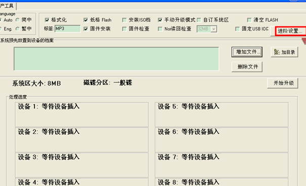 然后點(diǎn)擊套用關(guān)閉設(shè)定窗口。 在主量產(chǎn)界面選擇增加文件如下圖: