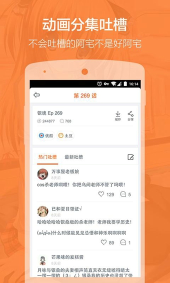 點擊【吐槽】,可以看到網(wǎng)友們針對各個新番動畫所提交的吐槽文字。