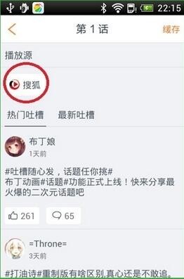 進入【播放源】選擇界面,這里我們選擇【搜狐】。