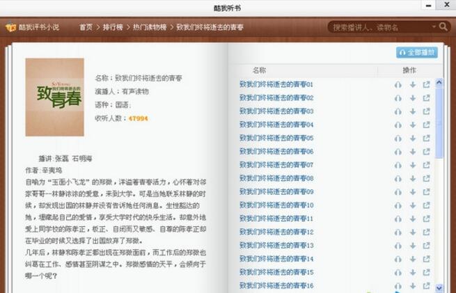 酷我聽書,最好用的手機聽書軟件。