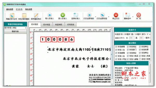 01、內置B6/ZL/DL/C4/C5國標信封模版和信封標簽模版,只需導入收信人資料,即可輕松批量打印各種信封和信封標簽;02、靈活的打印項目調整功能,可以設定打印那些項目和不打印那些項目,所見即所得的信封模版編輯功能讓打印設計工作瞬間完成;