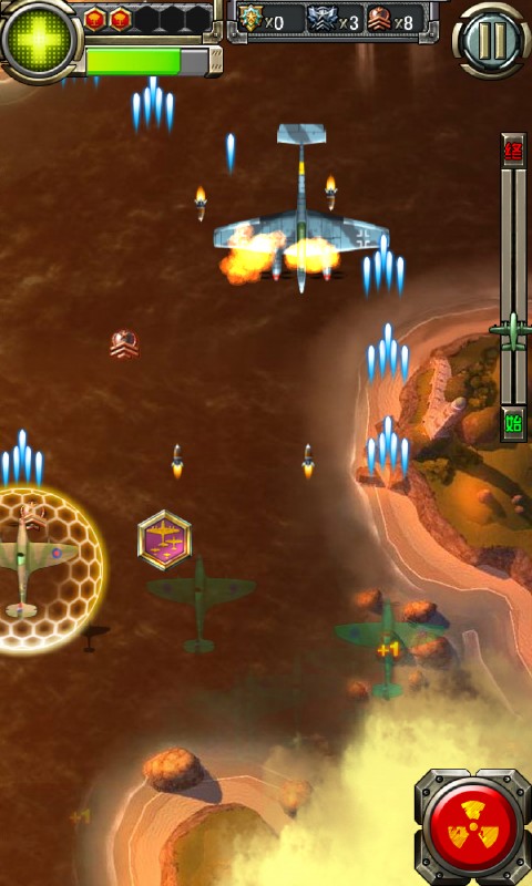 雷霆?dú)灀糁┤諏徟邪沧堪?/strong>是一款飛行射擊手機(jī)游戲,關(guān)卡眾多,還有豐富的游戲劇情、龐大的戰(zhàn)機(jī)系統(tǒng),戰(zhàn)斗過程緊張且激烈,總之雷霆?dú)灀糁┤諏徟惺且豢钸€不錯的游戲。