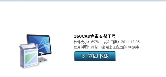 360CAD病毒專殺是針對CAD病毒制作的查殺軟件。這種CAD病毒具有傳播快,隱蔽性高的特性,一般安全軟件無法查殺火徹底根除。使用360CAD病毒專殺可以幫你一鍵搞定,還不留任何殘余。