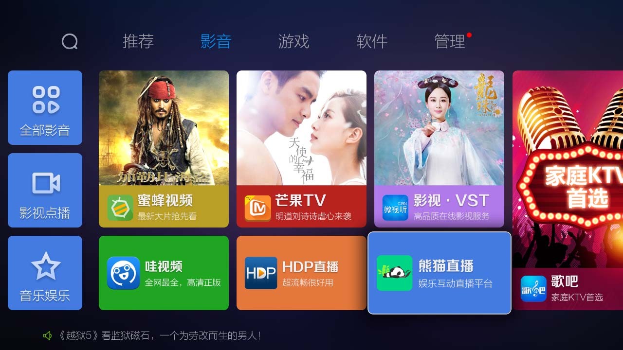 蜜蜂市場TV版聚集了時(shí)下最全最新的影音、游戲、工具類應(yīng)用,總數(shù)已達(dá)到3000+;設(shè)有應(yīng)用搜索功能,使用戶能夠更精準(zhǔn)地找到所需要的軟件,人性化設(shè)計(jì)為用戶帶來極大便利。