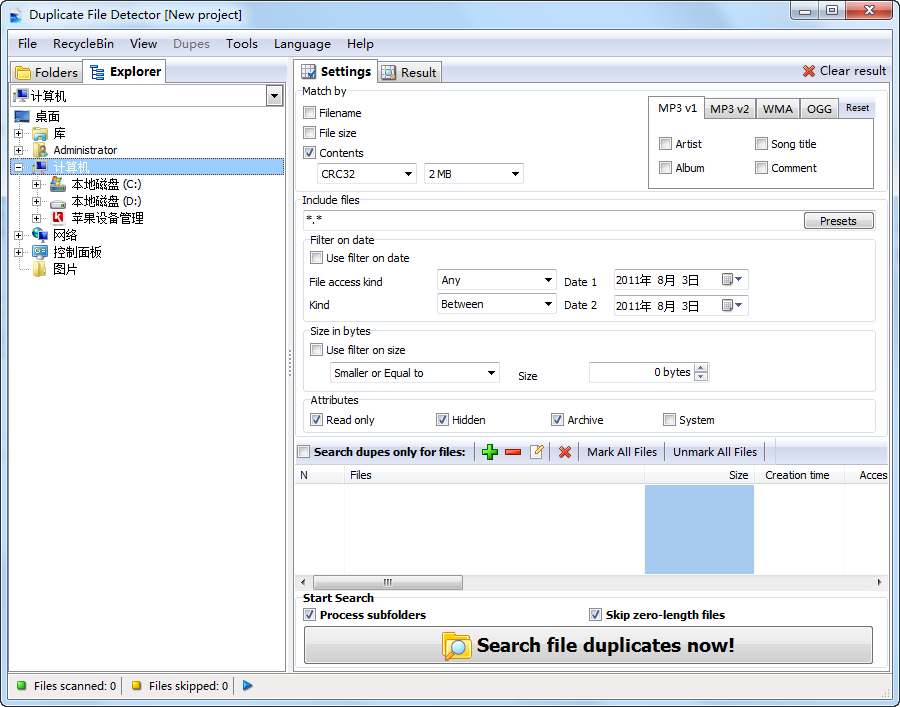 搜索方式有兩種,一種比較快,一種比較慢。速度快的掃描得不夠準(zhǔn)確和全面;速度慢的掃描很詳細(xì),很準(zhǔn)確。建議第一次使用可以用全面掃描,以后維護(hù)的話,可以使用快速掃描,節(jié)省時間。關(guān)于判斷重復(fù)文件的標(biāo)準(zhǔn),Duplicate File Finder不象某些程序僅僅是檢查文件名,而是以CRC校驗碼為標(biāo)準(zhǔn)(99.99%精確度),或者是字節(jié)比對(絕對精確),有了這兩個標(biāo)準(zhǔn),你就可以輕易找出磁盤下的所有重復(fù)文件,刪除它們,騰出寶貴的磁盤空間,在某種程度上,也可以加快系統(tǒng)運行。