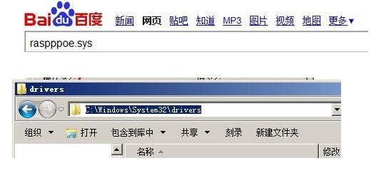 10、檢查一下看看問題是否解決,如果沒有解決,繼續(xù)下面的步驟。百度搜索raspppoe.sys,將該文件下載下來(lái)。