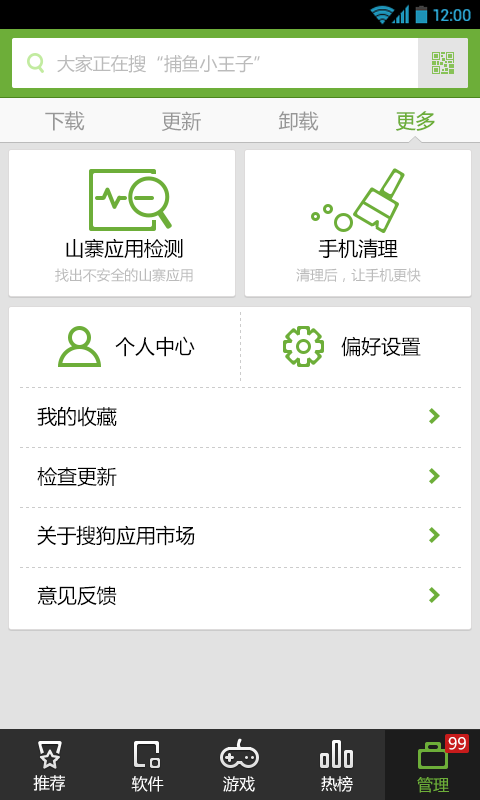 搜狗應用市場2.6.3版本新功能1.Wifi網(wǎng)絡下自動升級搜狗市場。