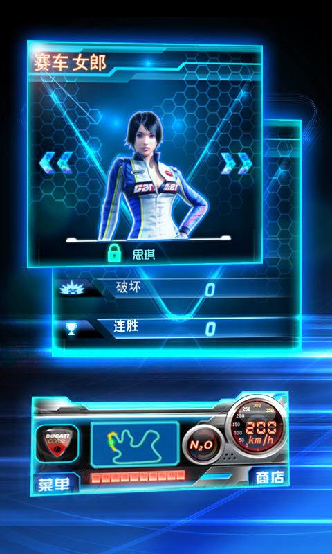2、駕馭馬力最強(qiáng)的摩托賽車,帶上火辣的賽車女郎,代表中國去奪取最后的冠軍獎(jiǎng)杯吧!