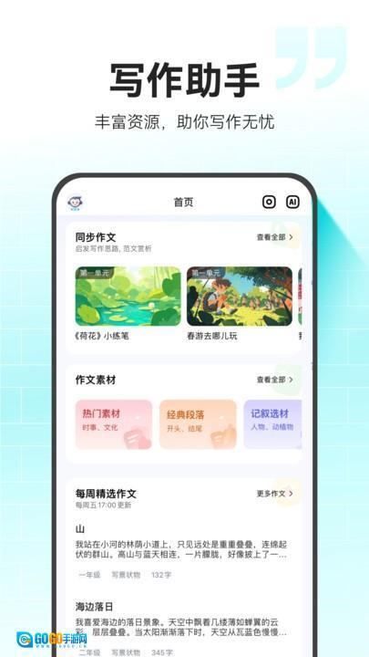 3.提供同步作文、范文素材和名師在線課程,全方位提升學(xué)生的寫作能力;