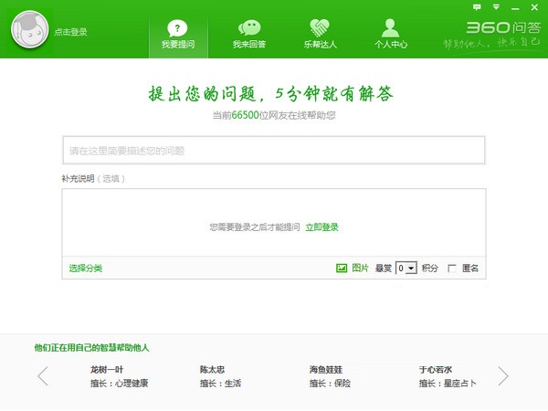 360問(wèn)答能通過(guò)網(wǎng)上自動(dòng)搜索為你解決問(wèn)題,還可以一鍵是網(wǎng)友求助,平均5分鐘你就能找到想要的答案。親,360問(wèn)答電腦版已添加在安全衛(wèi)士的功能大全中, 如果已經(jīng)安裝安全衛(wèi)士,只需一鍵,即可使用360問(wèn)答!【功能介紹】