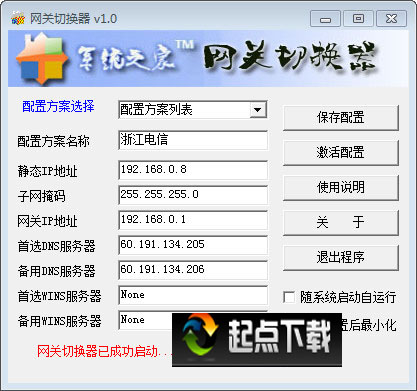 網(wǎng)關(guān)切換器是一款弄能多樣的網(wǎng)絡(luò)工具,可以更改IP、子掩碼等參數(shù),多用于學(xué)校、公司、網(wǎng)吧等電腦公共場合。網(wǎng)關(guān)切換器可以設(shè)置多套配置方案,方便隨時(shí)更換ip、網(wǎng)關(guān)等參數(shù),小巧易用。