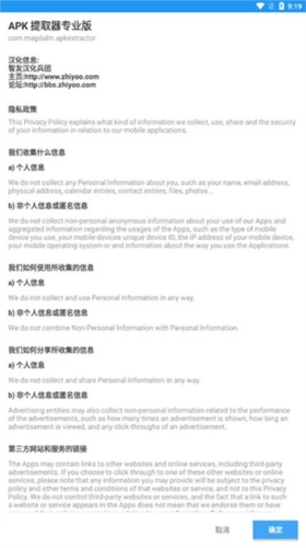 1、從本站獲取APK提取器,下載完成后直接打開即可,首先會出現(xiàn)信息聲明,具體內(nèi)容如下圖所示: