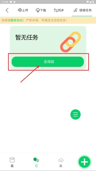 2、當(dāng)處于暫無任務(wù)的頁面時,點(diǎn)擊“去添加”按鈕,即可進(jìn)入添加鏈接任務(wù)的界面。