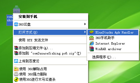 1、要玩釣魚發(fā)燒友電腦版,首先請(qǐng)大家下載安卓模擬器:http://m.sygqzm.com/downinfo/55246.html2、右鍵點(diǎn)擊apk文件,選擇以BlueStacks Apk Handler方式運(yùn)行