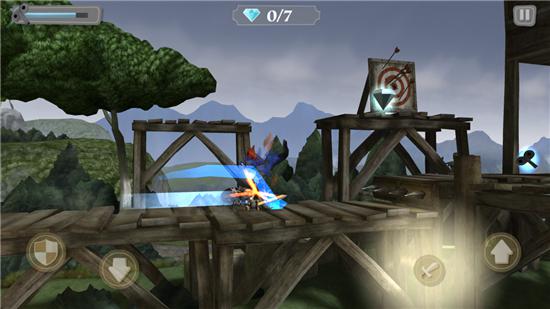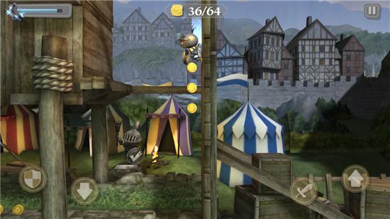 使用左手可以命令騎士小哥做出盾牌格擋和滾地兩種動作,右手就更簡單了,分別控制攻擊和跳躍,玩家需要利用這四種行動來闖關。沿途你會遇到各種奇奇怪怪但是又非常有意思的障礙或陷阱,比如豌豆投石機、閣樓中下落的木桶都可以將你砸死,不用考慮了,立刻舉起你的盾牌吧?!皾L地”其實就是為了通過一些比較低矮的環(huán)境,玩法要領從本質(zhì)來說和《神廟逃亡》系列是一致的,只是角度和操作上《發(fā)條騎士》系列更有新鮮感。