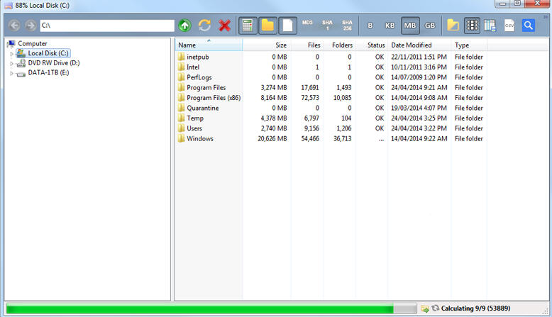 顯示并計算在任一KB,MB或GB的Windows資源管理器的文件和文件夾的大小列。