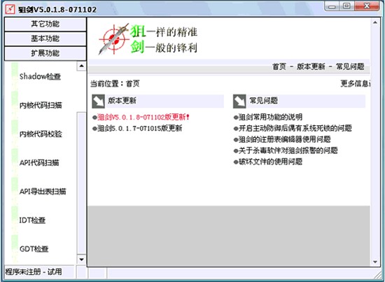 一款強大的安全反黑工具,包括自啟動項(包括隱藏的驅(qū)動和服務(wù)),進程管理,SSDT、Shadow-SSDT、FSD的檢測與恢復(fù)等等。其自帶的系統(tǒng)監(jiān)視功能,可提供惡意軟件對文件及注冊表的修改,方便手工查殺木馬。性強強悍,是目前少數(shù)能與icesword抗衡的反黑工具。軟件強悍,但易用性較差,不乏為一遺憾??傊?,是一款強悍的反黑的工具,當其他反黑工具失效時,推薦試試。