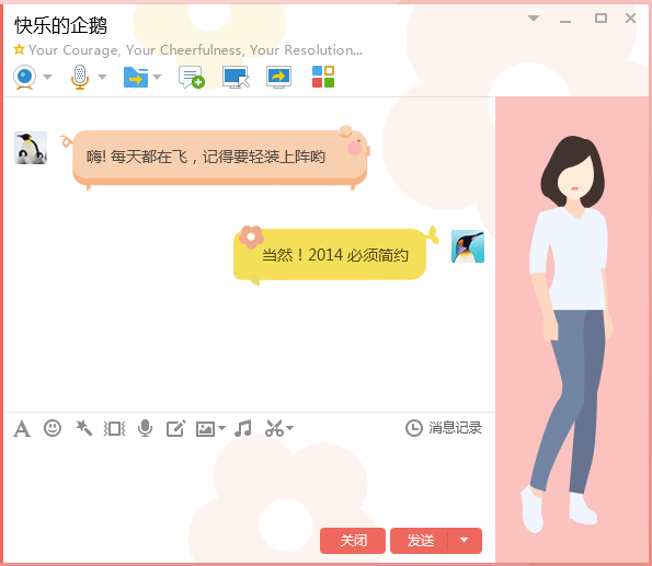 簡(jiǎn)約大氣的聊天窗口,氣泡、皮膚、QQ秀自由搭配,個(gè)性設(shè)定給你不一樣的聊天心情