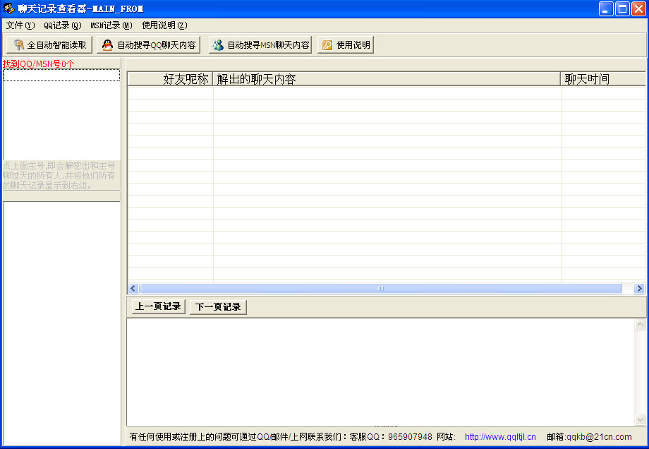 1、不用登陸,打開(kāi)軟件即可自動(dòng)搜索和顯示電腦上所有QQ和MSN的歷史聊天數(shù)據(jù)2、軟件原理是直讀歷史聊天數(shù)據(jù),不用象聊天記錄器那樣如事先安裝,即下即看。