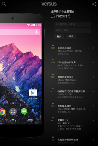 Versus是一個成熟的比較平臺,從比較手機(jī)到比較城市,包含三十多個類別的比較,脫去繁雜的營銷外殼,呈現(xiàn)最真實(shí)的一面,讓您輕松掌握一切資訊。