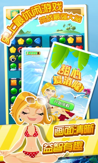 甜心愛消除:一款消除類的游戲,玩法就不用多說了吧,大家應(yīng)該很熟悉了,把幾個(gè)東西排一起,消除就可以了。