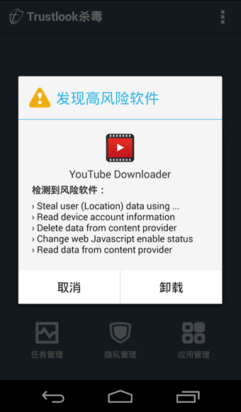 Trustlook安全衛(wèi)士(殺毒) - 保護(hù)你的Android手機(jī)或平板電腦免受病毒,利用其專有的下一代移動(dòng)安全解決方案,完美查殺移動(dòng)病毒和木馬。【軟件特點(diǎn)】