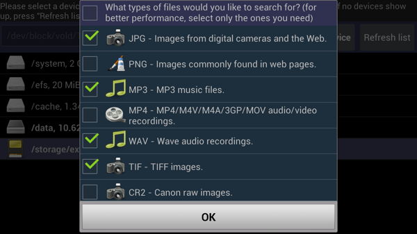 同樣,這個程序是為只有扎根設(shè)備!這也是一個工作在制品的應(yīng)用程序(而不是幾乎一樣強大的Windows原DiskDigger),因此所有建設(shè)性的反饋意見和功能要求,歡迎!