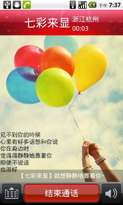 七彩來(lái)顯,在用戶(hù)來(lái)、去電過(guò)程中,向?qū)Ψ秸故緜€(gè)性簽名內(nèi)容的手機(jī)通話(huà)工具。