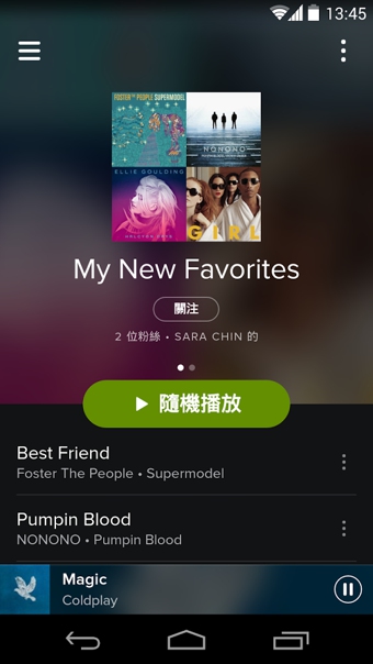 有了 Spotify,音樂世界隨你暢游。你可以聆聽藝人和專輯歌曲,也可以建立自己最愛歌曲的播放清單。想要探索新音樂嗎?選擇適合自己心情的預(yù)建播放清單,或者取得個(gè)人化的音樂推薦。